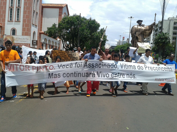 Um grupo de aproximadamente 100 pessoas fizeram um protesto nesta quarta-feira (06), em frente à delegacia de Imbituba, pela morte do menino indígena Vitor Pinto da etnia Kaingang, de dois anos, assassinado no dia 30/12 do ano passado. O delegado Rafael Giordani foi questionado pela mãe da criança, Sonia da Silva e pelos manifestantes porque o suspeito, Matheus A. da Silveira de 23 anos, está preso na Unidade Prisional de Imbituba temporariamente por não ter havido flagrante. A indignação dos pais do bebê é que ele seja liberado pela polícia. Laudos periciais vão apontar se o crime foi de motivação preconceituosa, como suspeita a família da criança, pela escolha do acusado em atacar uma criança indígena e não ter ficado na cena do crime, o que impossibilitou o flagrante. Não se sabe se o acusado possui distúrbios mentais ou é usuário de drogas. Em seu perfil em uma rede social ele compartilhava imagens e frases como:”NICTOFILLIA (SF); afinidade pelas trevas ou pela noite. qualidade daquele que encontra conforto na escuridão.” * Rádio Yandê