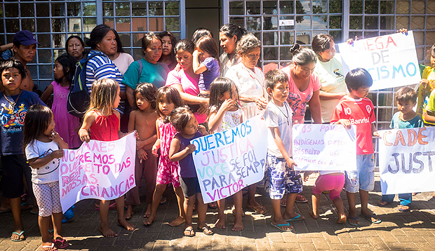 Índios fazem manifestação contra morte de criança de 2 anos em Santa Catarina