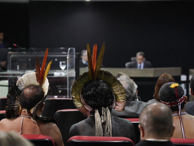 No início da manhã, índios cantaram e dançaram na frente do TRF-5.