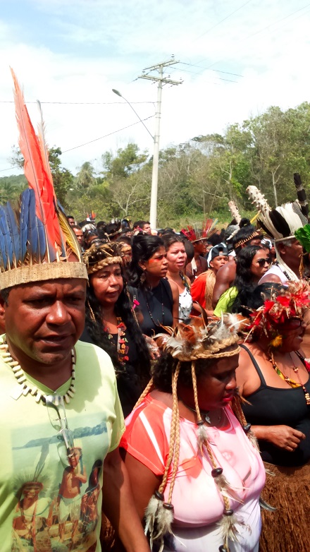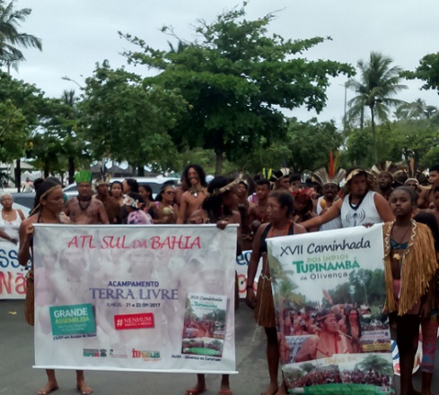 Fechando o 1º Acampamento Terra do livre Sul da Bahia dos povos indígenas, promovida pelo Movimento Indígena da Bahia (MUPOIBA), na manhã do dia 24 de setembro, a grande caminhada que saiu da  Igreja Nossa Senhora da Escada no centro de Olivença, com mais de  3 mil indígenas Tupinambá de Olivença, pataxó hã hã hãe, e representantes de entidades da sociedade civil, estudantes, movimentos sociais, e se dirigiram até a praia do Cururupe e realizaram a XVII Caminhada dos Mártires Tupinambá.