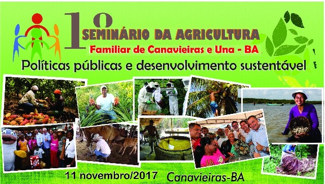 Acontece no próximo sábado (11), na cidade de Canavieiras, o 1º Seminário da Agricultura Familiar de Canavieiras, Una e Região, no Auditório do LEM (Colégio Luiz Eduardo Magalhães) a partir das 08 horas da manhã. O objetivo do seminário e das organizações da “Agricultura Familiar do Município” de Canavieiras, Una e região é a luta pelas demandas de políticas públicas e ações de sustentabilidade e fortalecimento do setor junto aos governos federal, estadual e municipal. Neste evento é esperado um público participante de 200 (duzentos) lideres de 20 localidades diferentes da região das cidades vizinhas.