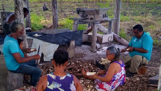 Sobre a divisão do trabalho, a cacique Cátia conta que mudou muito nos últimos 40 anos, porque as mulheres têm mais autonomia: “Ela deixou de ter o papel só de mãe e dona de casa. Hoje, ela ajuda o marido nas atividades e consegue fazer o processo completo de produção de farinha, por exemplo”.