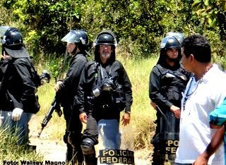 - Cláudio Magalhães na linha de frente de uma das ações da polícia federal contra as comunidades indígenas. Foto: Walney Magno