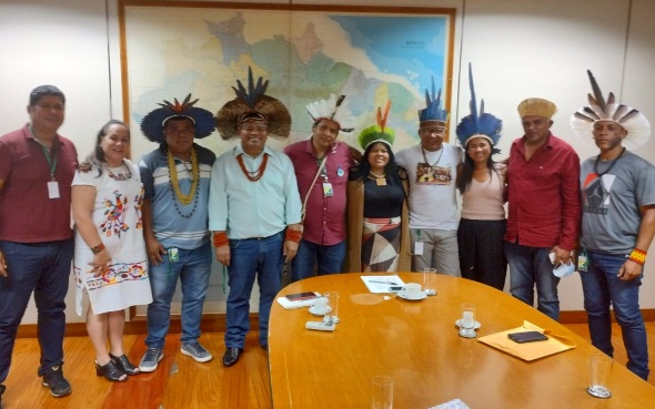 A comitiva dos povos indígenas da Bahia, foi recebida pela ministra dos povos indígenas, Sônia Guajajara, o Secretário da Sesai, Ricardo Weibe Tapeba, e a presidente da Funai, Joênia Wapichana, para definição da participação dos povos indígenas no governo.