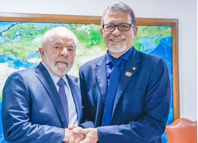 O presidente Lula pousa para foto ao lado de Afonso Florence